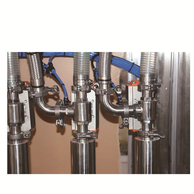 3. Irteera handiagoaren beharra asetzeko bi trenbideko botila elikatzea, bi trenbide betetzea eta bi toberaren txapela torlojatzea edo ijeztea eta sakatzea dira. Makina honek betetze-zehaztasun handia du eta desmuntatu eta antzerki daiteke modu egokian, junturako altzairu herdoilgaitzezko pistoi pontua hartuz. Momentu estuko torloju torlojua eta babes pneumatikoa erabiliz, aho zigilatua iragazgaitza da.